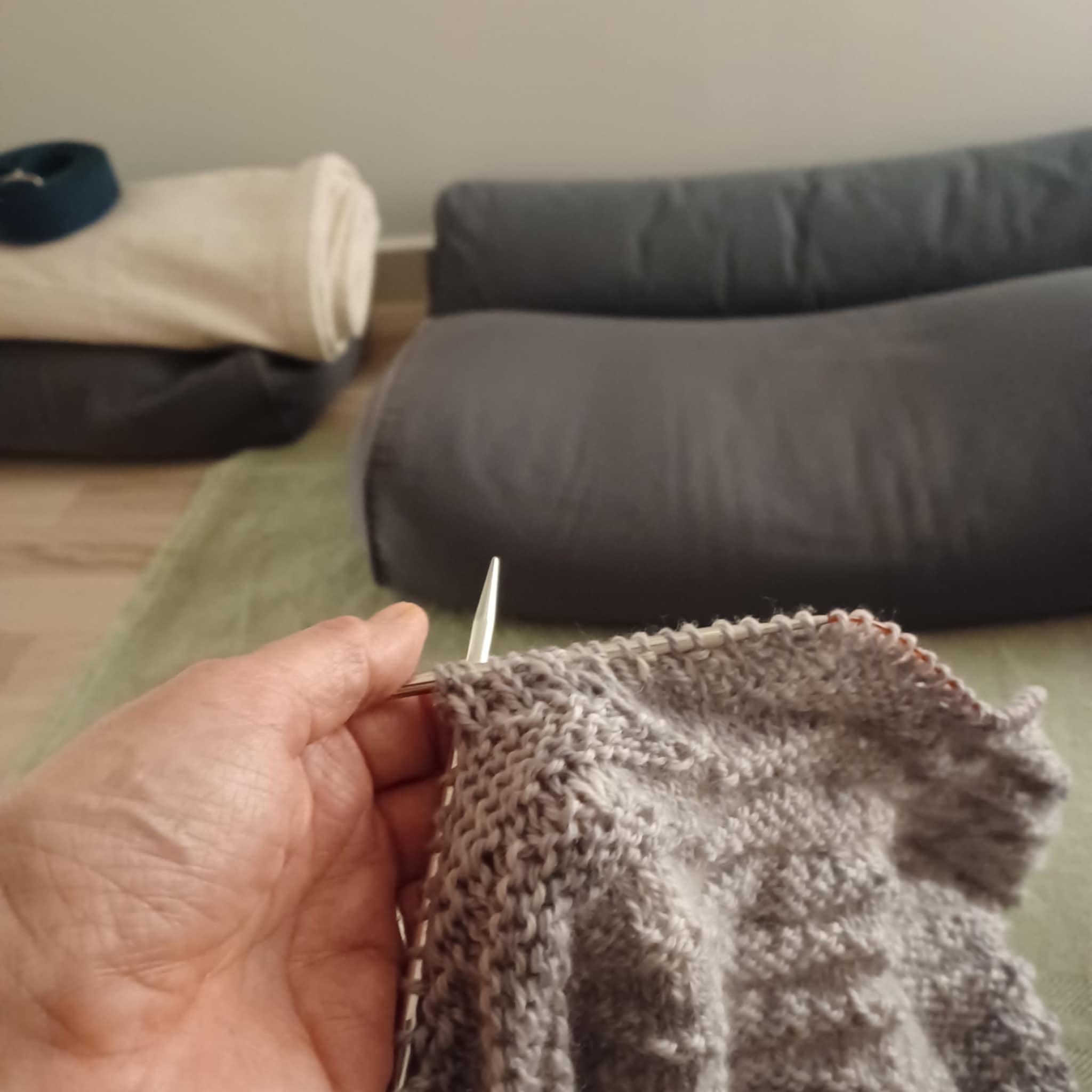 Vi starter med ca. 30 minutters yoga for de, til tider, ømme strikke skuldre, arme og hænder.
